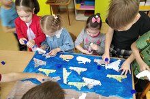 Балалар белән бергә "Туган илне саклауда" дигән күмәк эш башкарылды. Балалар хәрби техника -корабль турында белемнәрен ныгыттылар. Балалар башта плакат, аннары рәсемнәрен буяп чыктылар, кайчы белән сак кисеп плакатка ябыштырдылар. Бу күмәк эш балаларда Ватанга мәхәббәт һәм аны саклаучыларга хөрмәт уяту хисләре тәрбияли.