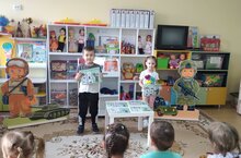 Бүген уртанчылар төркемендә "Ватан сагында торучы солдатлар" темасы буенча Россия армиясе турында әңгәмә үткәрелде. Балалар Армия сафларында хезмәт итүчеләр - солдатлар, диңгезчеләр, очучылар, чик сакчылары турында рәсемнәр карадылар. Җәүдәт Дәрзаманның "Солдат булдым" шигырен тыңлап, сорауларга җаваплар бирделәр. Ахырдан "Билгеләрен тап" дигән дидактик уен оештырылды.