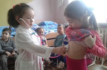 Сегодня дети второй младшей группы ознакомились с сюжетно-ролевой игрой "Больница". Заранее была проведена предварительная работа - это беседы о профессиях медицинских работников, чтение сказки "Айболит" К.И.Чуковского, знакомство с медецинскими инструментами, рассматривание иллюстраций по теме "Больница". Вместе с воспитателем дети учились строить диалог между врачом и больным (мамой, папой и дочкой). В помошники врачу взяли медсестру, которая давала таблетки и ставила градусники. Дети учились правильно вести себя в общественных местах - не шуметь, здороваться, спрашивать вежливо, благодарить за оказанную помощь, прощаться. В конце игры доктор всех больных вылечил, пожелал здоровья и дал свои рекомендации: делать зарядку, не есть много конфет, а употреблять больше овощей, фруктов и почаще гулять на свежем воздухе.