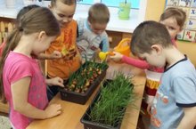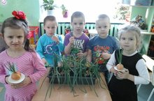 Всем известно о пользе лука и чеснока. Каждый год с началом холодов мы в группе используем лук и чеснок для профилактики простудных заболеваний. Утром чистим и режем лук, на тарелочках расставляем его в разных уголках группы. В обед лук и чеснок на столах и все желающие дети могут его кушать. Но, к сожалению, не все дети любят вкус репчатого лука. Мы решили вырастить зеленый лук. Посадили лук и чеснок. А для сравнения в стеклянную посуду посадили лук с проросшими корешками, чтобы наблюдать за растущими корнями и зелеными перышками.С каким интересом и удовольствием дети наблюдали и ухаживали за луком!Уже не терпится собрать урожай и попробовать лучок! Теперь равнодушных к луку детей не осталось! Все с удовольствием скушали по зеленому перышку, ведь лук, выращенный своими руками, самый вкусный и полезный! -