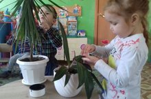 Сегодня дети с большим удовольствием наблюдали за работой воспитателя, а затем повторили некоторые действия. В процессе работы воспитатель Эльмира Ильдусовна объяснила детям, что поливают растения и вытирают пыль с листьев для того, чтобы они лучше росли и радовали всех красивым цветением и зеленью!