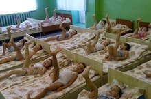 Прогоню остатки снаОдеяло в сторону.Нам гимнастика нужнаПомогает здорово.Зарядка после сна проводится в ежедневном режиме во всех возрастных группах, начиная с раннего возраста. Такая гимнастика помогает малышам поскорее проснуться, настроить свое тело на рабочий лад, развивает координацию движений. Обязательным условием является и прохождение по ребристой "Дорожке здоровья", которая "пробуждает" стопу ребенка, закаливает организм. Ребята из средней группы № 1 каждый день делают такую веселую зарядку, поэтому растут крепкими, здоровыми и веселыми!!!! -