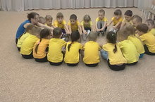Очень интересными и увлекательными для дошкольников являются выполнение общеразвивающих упражнений с предметами, в частности с круговой верёвкой, несмотря на сложность выполнения данных упражнений, т.к. детям разного роста, с разной длиной рук приходится делать движения вместе, согласовывая с движениями других детей. Но преимущество таких упражнений в том, что здесь воспитываются доброжелательные отношения к сверстникам в совместной двигательной деятельности.