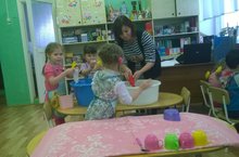 Малышей привлекает работа в уголке природы, им очень интересно видеть изменения, происходящие там. В данный момент дети с увлечением наблюдают за изменениями в росте луковиц, где Венера Вагизовна, объясняет им влияние света, тепла, влаги и питательных веществ в росте овощей, вызывая у своих воспитанников познавательный интерес к выращиванию лука, развивает наблюдательность, учит связывать причину и следствие изменениям в росте растений.