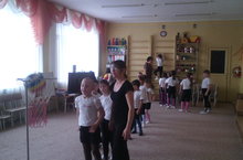 При проведении основных видов движений на физкультуре инструктором применяются различные способы организации детей: фронтальный, подгрупповой, поточный, индивидуальный. При сочетании процесса обучения и самостоятельного совершенствования детьми уже приобретённых двигательных навыков в старшем дошкольном возрасте актуален подгрупповой способ проведения основных видов движений. Так, в данном случае, инструктор по физкультуре Газизова И.В разучивает с детьми новое упражнение - метание мяча в кольцо, а воспитатель Гаффарова А.А. закрепляет навыки лазания по гимнастической стенке, что способствует сохранению двигательной активности всех детей и моторной плотности организованной деятельности.