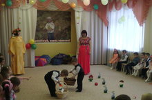 Прекрасное праздничное представление преподнесли дети средней группы, организовав с хозяйкой леса весёлые игры и хороводы, соревнования на опушке леса в сборе грибов и осенних листьев.