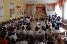 С большой гордостью и крепкими патриотическими чувствами дети средней, старших и подготовительных групп прошлись по празднично украшенному залу со строевыми песнями. Они исполнили стихи, песни и танцы на военную тематику. Вспомнили и с большой любовью прочитали и инсценировали произведения нашего героя – поэта М. Джалиля.