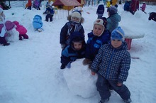 Воспитанники средней группы № 1 каждый день весело и занимательно проводят время на прогулке. Ребятишки устраивают шумные, снежные баталии. Катают друг друга на ледянках. И конечно, с большим удовольствием лепят снеговиков. Смех, радостные, веселые крики не смолкают до самого обеда. Но вот ребятам приходит пора возвращаться в детский сад. По дороге мы не забываем насыпать в кормушки зернышки для птичек. Веселые и счастливые, немного уставшие возвращаются дети в детский сад, где их ждет вкусный обед. -