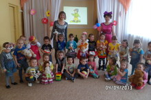 С детьми 2-ой младшей группы №2 был подготовлен и проведён музыкально - литературный вечер развлечений по произведениям А. Л. Барто из стишков из серии "Игрушки" на тему "Игрушки - малышам". Музыкальный руководитель Харитонова Л.С. и воспитатель Гиззатуллина Ф.Д. в увлекательной форме, с применением различных приёмов закрепили материал из знакомых стихов любимой поэтессы. Данное мероприятие вызвало у всех маленьких "актёров" и слушателей - ровесников ( детей 2-ой младшей группы №1) и совсем маленьких (детей 1-ой младшей группы), большую радость и доставило им удовольствие воспроизвести любимые произведения не только в стихотворной форме, но и в песенном жанре, в танцевально - ритмических движениях.