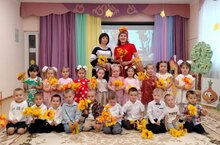 В старшей группе детского сада сегодня прошло развлечение "Осень в гости к нам пришла!". Яркий праздник для детей прошел весело и увлекательно потому, что к ним на праздник пришло Пугало Огородное. Оно веселило детей и играло с ними в игры. А для Осени дети спели любимые песни, рассказали стихотворения и показали красивые танцы. Осень угостила всех воспитанников спелыми яблоками.