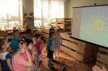 Во второй младшей группе ( воспитатель Мингазова Р. К.) провела открытую образовательную деятельность по образовательной области "Познавательное развитие". Педагог беседовал с детьми о признаках весны, воспитанники наблюдали за распустившимися листочками на веточке черемухи, и подняли солнцу настроение, нарисовав лучики. ( В рисовании использовался прием "отпечаток" лего кирпичом).