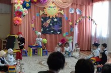 Сегодня в рамках Дня космонавтики в музыкальном зале детского сада состоялся коллективный просмотр познавательного мультипликационного фильма для детей о космосе.