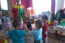 Сегодня во второй младшей группе провели - День искусства. Петрушка принёс детям, приобретённые на ярмарке, дымковские игрушки. Ребята любовались игрушками, вспомнили историю возникновения дымковских игрушек, Петрушка поиграл с ними в народные игры, спел песенки – прибаутки, предложил раскрасить лошадку элементами дымковской росписи.(Воспитатель Медникова Г.З)