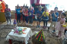 Сегодня день именинника. Ребята младшей группы№1 решили поздравить куклу Катю с днём рождения. Все было готово к празднику: накрыли на стол, приготовили угощения и подарки. Ребята водили хоровод вокруг Куклы Кати, пели весёлые песни, играли в забавные игры. У всех было хорошее настроение. На празднике царила доброжелательнаяатмосфера. Именины удались на славу!