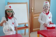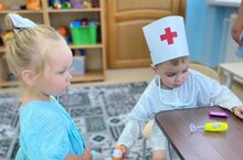Сегодня ко дню медицинского работника в нашей группе беседовали с детьми о профессии врача и медсестры. Прочитали сказку доктор Айболит Корнея Чуковского. Дети с удовольствием играли в подвижную игру " Помоги доктору Айболиту собрать медицинский чемоданчик".