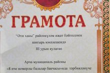 Бакчабызның уртанчылар төркемендә тәрбияләнүче яшь каләмчебез "Әти хакы" районкүләм иҗади бәйгенең шигырь юнәлешендә 3 урын яулады. Аңа алга таба да иҗади уңышлар телибез.