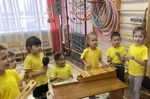 На музыкальных занятиях дети с удовольствием слушают музыку, высказывают своё отношение к ней, разучивают и исполняют песни, танцы. А также учатся играть на детских ударных инструментах. Обучаясь игре на музыкальных инструментах, дети открывают для себя мир музыкальных звуков и их отношений, осознаннее различают красоту звучания.