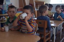 И сегодня дети средней группы узнали, что напиток благотворно влияет на детский кишечник, точнее на его микрофлору. В нем содержатся особые, уникальные "грибки" - целая колония микроорганизмов, палочек, стрептококков, бактерий, бактерий, дрожжей. Они дружно противостоят вредной,,патогенной флоре, уничтожают возбудителей желудочно-кишечных заболеваний. Благодаря этим полезным свойствам , содержанию достаточного количества кальция, витаминов, белков, питательных веществ, кефир способен восстанавливать естественный баланс еще только формирующегося организма, что является залогом здорового развития ребенка. И вот так дружно дети обещали пить целебный напиток -