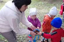 Сегодня в нашем садике прошел день дворовых игр.В связи с этим днем, в младшую группу пришла в гости бабушка.Она ознакомила детей играми"жмурки","Гори, гори ясно"и вместе играла с ними, создала радостное, бодрое настроение у детей.Малыши были активны и довольны.