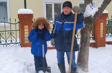Сегодня силами коллектива гимназии для игры учеников и их родителей в хоккей была организована очистка хоккейной коробки от снега.