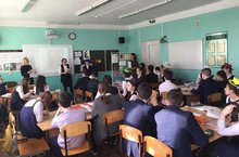 В рамках предметной недели учителей русского языка и литературы и учителей истории сегодня в гимназии для учащихся 10Б класса был проведен открытый урок русского языка "Нравственные проблемы рассказа В. Крупина "Мария Сергеевна". Урок провела Галимзянова Ф. Н.