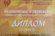 Поздравляем Нотфуллин И. с 1 местами на XII Чемпионате и первенстве объединенной федерации традиционного карате России в категориях «Ката синхронное мужское», «Ката мужское», «Кумите мужское» среди юношей 2007-2008 годов и старше.