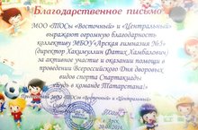 На торжественной линейке председатели МОО "ТОСы "Восточный" и "Центральный" Сафин Р.Г. и Хамидуллина Р.Ш. выразили огромную благодарность коллективу МБОУ - Арской гимназии №5 за активное участие и оказании помощи в проведении Всероссийского Дня дворовых видов спорта Спартакиады "Будь в команде Татарстана"