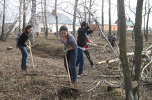 В рамках экологического двухмесячника продолжается работа по очищению закрепленной за гимназией территории микрорайона Восточный. Ученики восьмых и шестых классов приняли участие в убоке территории.