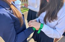 Активисты ФОРПОСТ раздали ребятам зелёные ленточки, а ребята обменялись ими со своими товарищами, завязав их на запястье рук с пожеланиями мира и добра. Затем набрав в ладони воду полили цветы, призывая символически поделиться водой с теми, кого уже с нами нет…