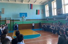 24 апреля учебная неделя в гимназии традиционно началась с вынесения флагов Российской Фелерации и Республики Татарстан, исполнения Государственных гимнов Торжественное право внести флаги Российской Федерации и Республики Татарстан было предоставлено Хусанбаеву Нурали -9А, Бахровой Самире--9А класс , участники районных мероприятий