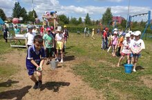 Сегодня в пришкольном лагере были проведены мероприятия, посвященные Году культурного наследия народов России. До обеда проводилась конкурсная программа «Праздник народов России». Затем вожатые с детьми играли в народные игры. В конце дня воспитанники сделали аппликацию «Мы разные, но мы едины».