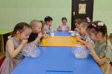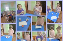 Дошколята с помощью мыльного раствора и трубочки пускали пузыри. Пузыри образуются при попадании воздуха в мыльный раствор. Детишки были довольные.