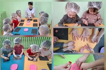 Цель: познакомить детей со свойствами мела (твердый, но может крошиться, оставляет следы на разных предметах).