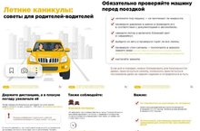 Приближаются летние каникулы и кто-то из вас может отправиться в путешествие на личном транспорте или просто будет выезжать загород. Центр по профилактике ДДТТ Института воспитания напоминает, что необходимо помнить о безопасности, поэтому мы собрали для родителей-водителей несколько полезных советов.