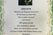 Бөек татар шагыйре-герой Муса Җәлил иҗатына багышланган балалар арасында беренче " Кызыл ромашка" республика конкурсында мәктәбебезнең 1 нче класс укучысы Шакирҗанов Аяз 3 нче дәрәҗә дипломга лаек булды.