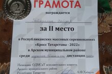 9 нчы сыйныф укучысы Мортазин Ильяр Арча муниципаль районы гомуми белем учреждениеләренең җыелма командалары арасында җиңел атлетика буенча ярышларның муниципаль этабында 2000 метрга йөгерүдә 3 урынны алды. Котлыйбыз! Киләчәктә зур җиңүләргә ирешергә язсын