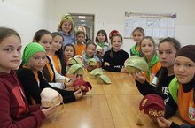 Мәктәбебезнең технология укытучысы "Без Тукай оныклары" лагерендә "Калфак" чигү буенча мастер класс үткәрде.