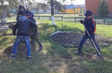 4 нче май көнне мәктәп күләмендә өмәдә катнаштык. Мәктәп территориясен, бакчаны, һәйкәл тирәсен җыештырдык.
