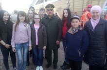 12 нче апрель көнне мәктәбебезнең 8 нче сыйныф укучылары Казан вокзалында экскурсиядә булдылар. Анда хәрби-патриотик акция кысаларында "Сирийский перелом" дип исемләнгән хәрби эшелон күргәзмәсе булды. Бу эшелон Россия һәм Сириядә хәрби операция вакытында террористлардан алынган була.