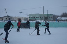 Хоккей мәйданчыгы көн дәвамында тынып тормый. Укучылар хоккей уйныйлар, шуу серләренә өйрәнәләр.