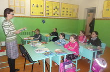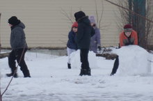 Башлангыч сыйныф укучылары физик тәрбия дәресендә саф һавада булалар. Алар чаңгы шуалар, төрле хәрәкәтле уеннар уйныйлар.