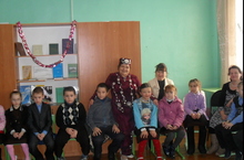 Мәктәбебездә Луиза Сабировна укучыларга кызыклы әкиятләр сөйләде , күңелле уеннар уйнатты. Башлангыч класс укучыларына бу очрашу бик ошады.