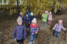 Күмәк эш "Көзге агач". 04.10.2021 Көз көне табигать үзенчә матур. Аеруча бу матурлыкны урманга баргач күрергә була. Агач яфраклары, әйтерсең җәй буена кояшта кызынып, көзгә таба алтын төсенә кергәннәр. Кояш нурларын сеңдереп авырайганнар да, саргаеп коела башлаганнар. Яшел, сары, ал, саргылт-кызыл, күгелҗем яфраклар үзәра лепер-лепер килеп сөйләшәләр дә төсле. Өзелеп төшкәннәре уманның тирә-ягын чуар келәмгә әйләндереп, аяк астында шыгыр-шыгыр килеп нидер сөйлиләр дә сыман. Көзге урман шул хатле матур, сүзләр белән аңлатып та булмый. Бу искиткеч гүзәллекне үз күзләрең белән күрергә кирәк. Матур ,көзге агач безнең балалар бакчасына да килде.