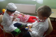 Балалар сюжетлы уеннар уйнаганчы, кем буласыларын бүлештеләр. Берсе врач , берсе медбрат. Алар шушы уеннан нәтиҗә чыгарып, үзләрен кем буласыларын күзалладылар.