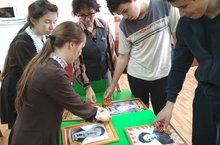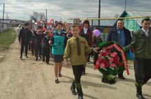 Укучылар, укытучылар чәчәкләр, шарлар, бабаларының, авылдашларыбызның фотоларын тотып "Үлемсез полк" акциясендә катнаштылар.