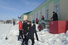 Уборка снега вокруг территории школы.