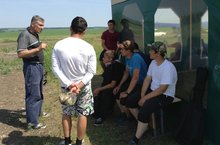 Учения продолжаются.Пилот-конструктор Борзенков С.Ю. учит ребят летать подъему по спирали, вводить и выводить в одном направлении самолет в спираль, летать по кругу и по прямой. Занятия ребятам очень нравятся.