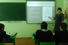 Сегодня учительница истории Фазлиева Р.Р. провела внеклассное мероприятие на тему "Россия и Крым-вместе", посвященное годовщине воссоединения Крыма и Севостополя с Россиией.А также в 5-6 классах был проведен конкурс рисунков по данной теме.