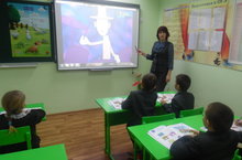 Каждый четверг ученики 1 класса посещают кружок английского языка "Счастливый английский".Сегодня занятие для учащихся было особенно интересным .На кружок учительница английского языка Загриева Г.М. пригласила учащихся 2 класса.Они показали первоклассникам свои знания английского языка и провели интересные игры,спели песни на английском языке.
