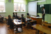 Республиканский семинар 14.10.2015 В рамках курса повышения квалификации учителей начальных классов в нашей школе был проведен республиканский семинар по теме "Методологические и педагогические аспекты внедрения ФГОС в начальном и общем образовании".Учительница начальных классов Гатауллина Гулия Фиргатовна дала открытый урок математики в 1 классе по теме "Цифра 2".